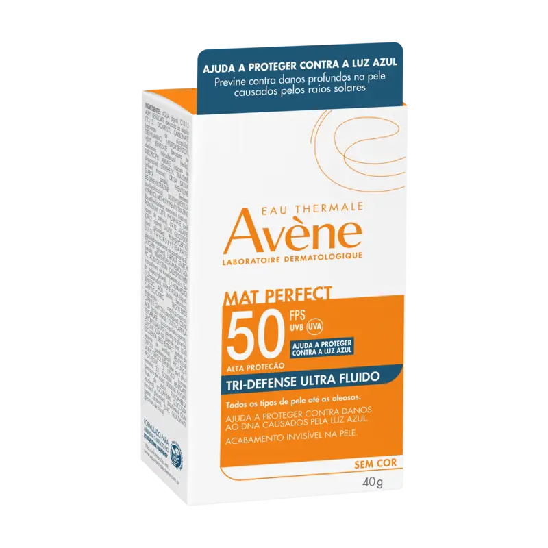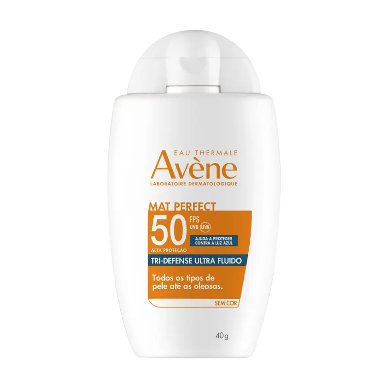 Mat Perfect Tri- Defense Ultra Fluido FPS50 sem cor é o primeiro protetor solar de muito alta proteção contra raios UVB, UVA curtos e longos até a Luz Azul (450 nm), indicado para todos tipos de pele até as oleosas.